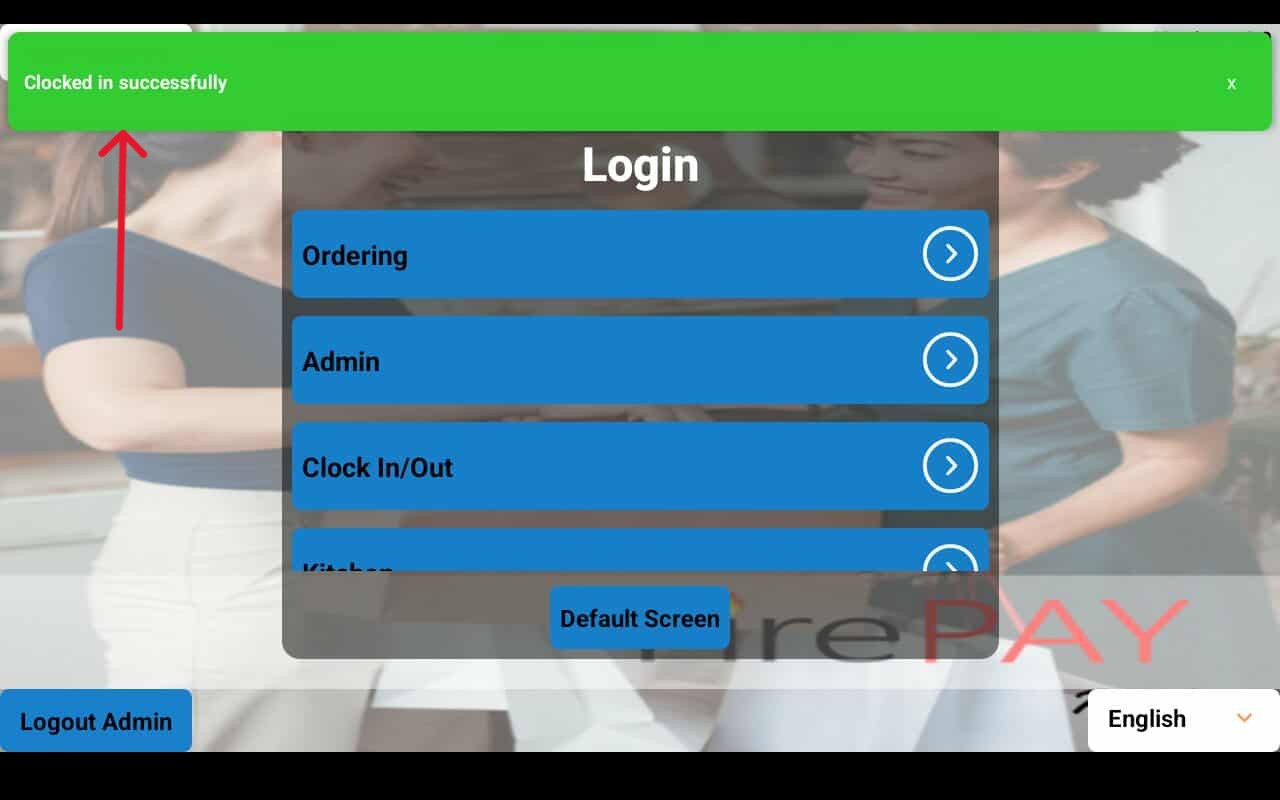 The system automatically records the exact time, storing it in the FirePAY POS timekeeping records for accurate payroll reporting and attendance management.